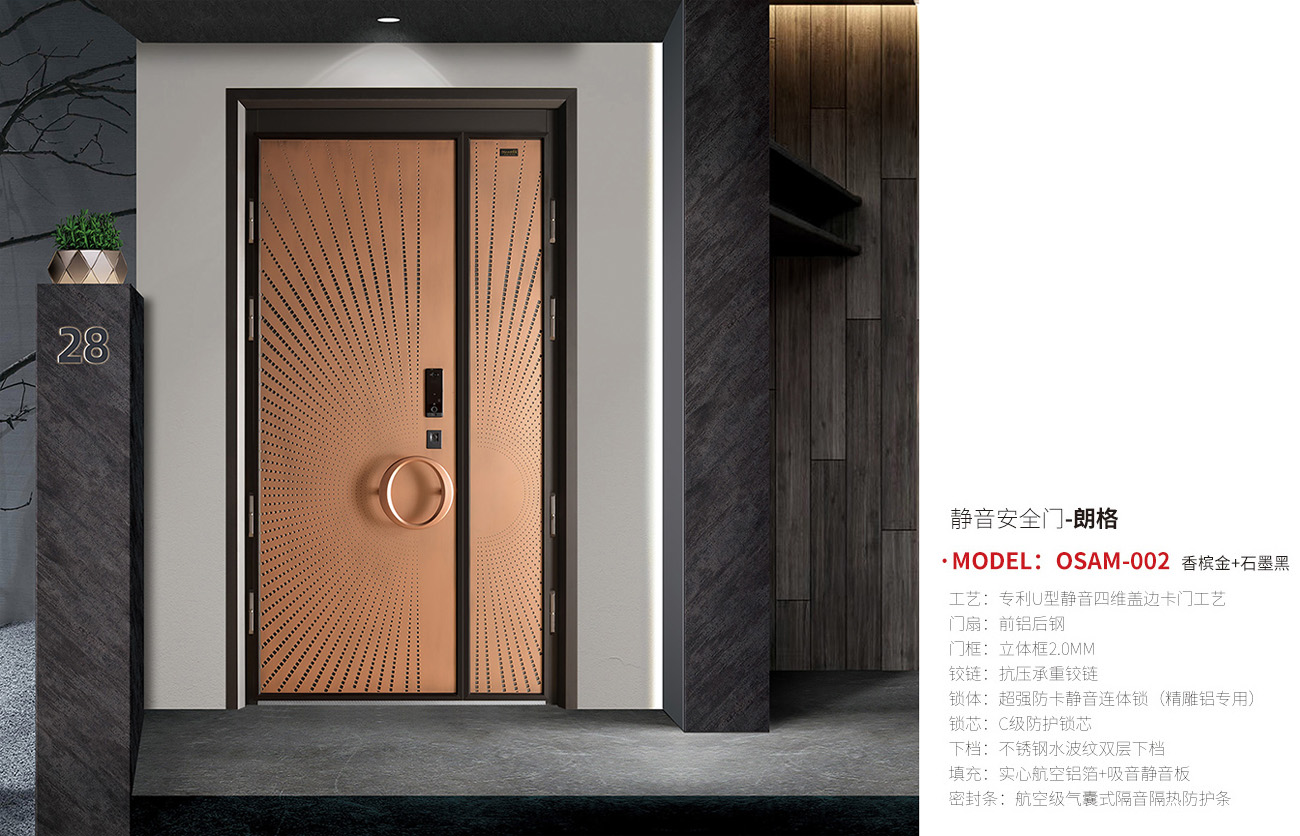 引領技術-歐奢曼全新打造靜音和安全雙系統安全門,為居者打造全新的生活方式。
