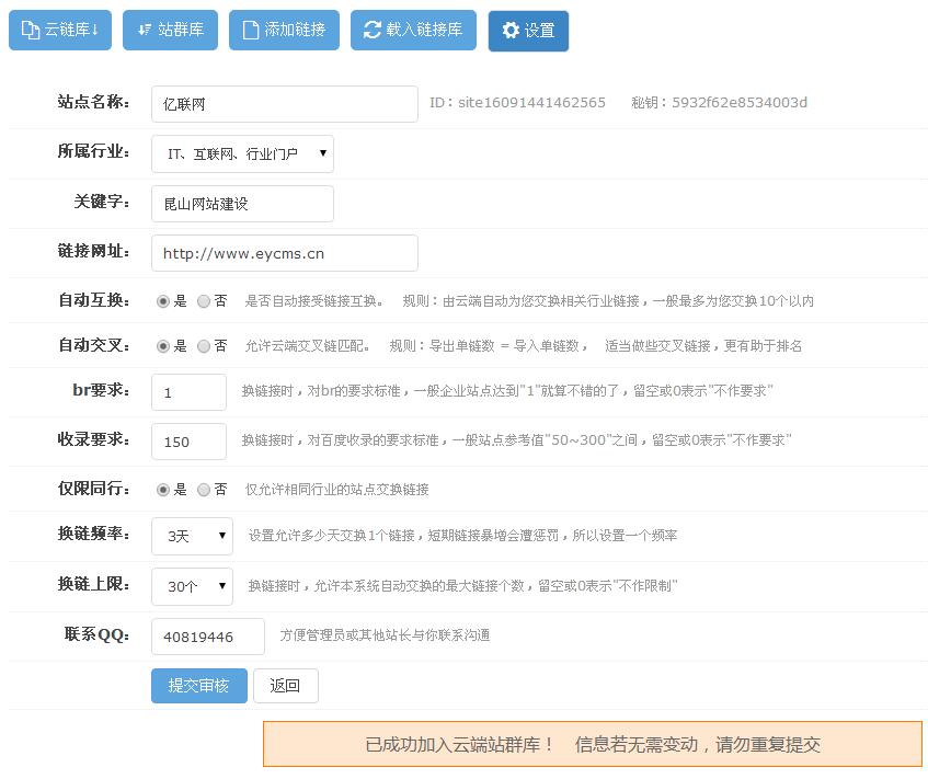 該插件為站長提供友情鏈接站群庫,設置交換規則后,自動增加鏈接(懶人首選^_^),以達到提升站點權重的作用。